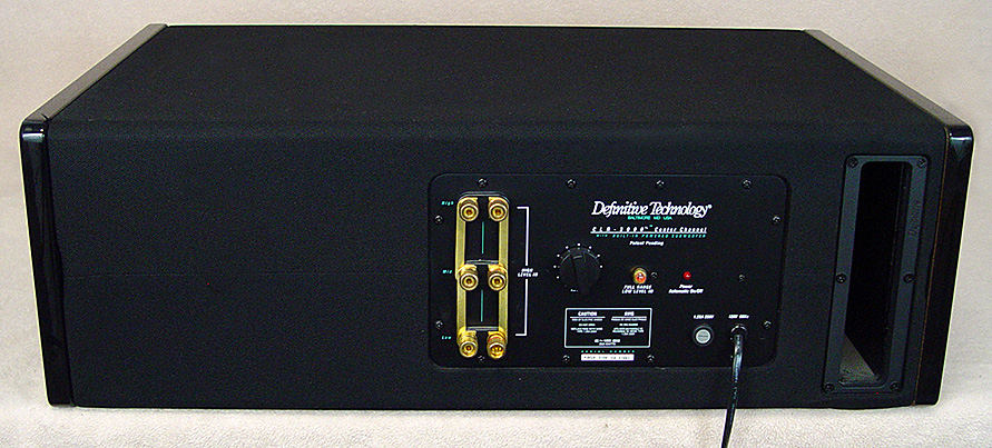 Newer Definitive Technology CLR-3000 Powered Center Channel with 150 watt Rear Ported Powered SubWoofer. Cabinet is Typical Definitive Design, Cloth Sock with Piano Black Side Panels. Dims: 8.25"t x 25"w x 17"d. 10" Sub with (2) 6.5" Woofers and 1.5" Dome Tweeter. Ex. Cond. 8.9