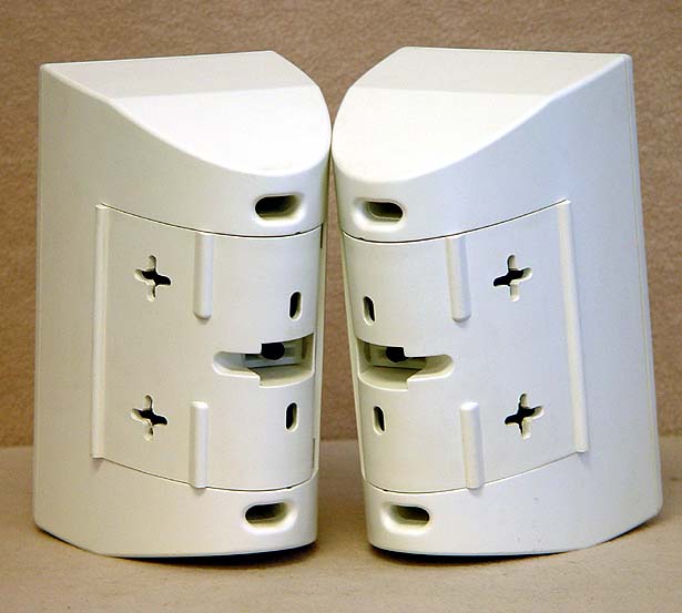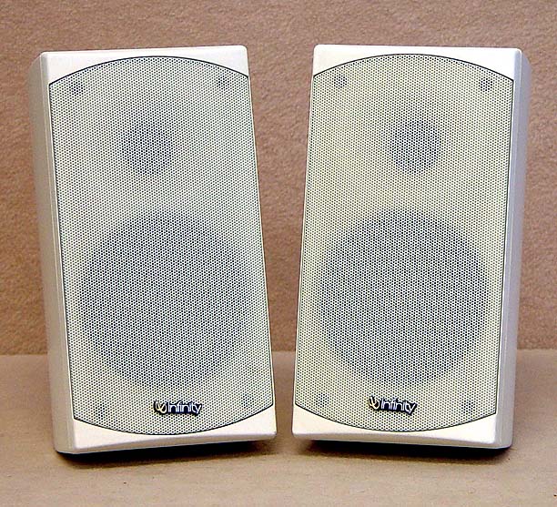 Nice Infinity 'StormTrooper' Satelite Speakers in White Plastic Wall Mount Cabinets. Dims: 9.5"T x 4.5"W x 6.5"D. 4" Woofers and 1" Tweeters. Perfect Outdoor Patio Speaker or Small Rear Surrounds. Ex.Cond 8.8