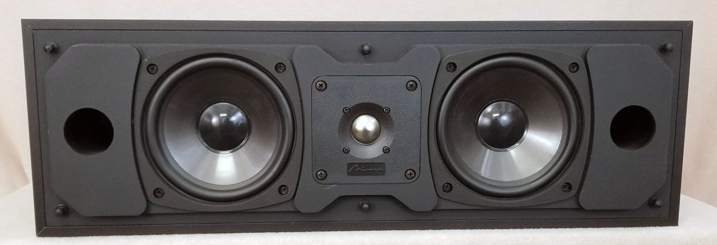 Mirage Brand MCC-R Center Channel Home Theatre Speaker in a Ported Black Vinyl over MDF Cabinet. Dims: 5.75"T x 18.5"W x 8"D. (2) 4" Woofers and 1" Mylar Tweeter. Ex.Cond 8.9